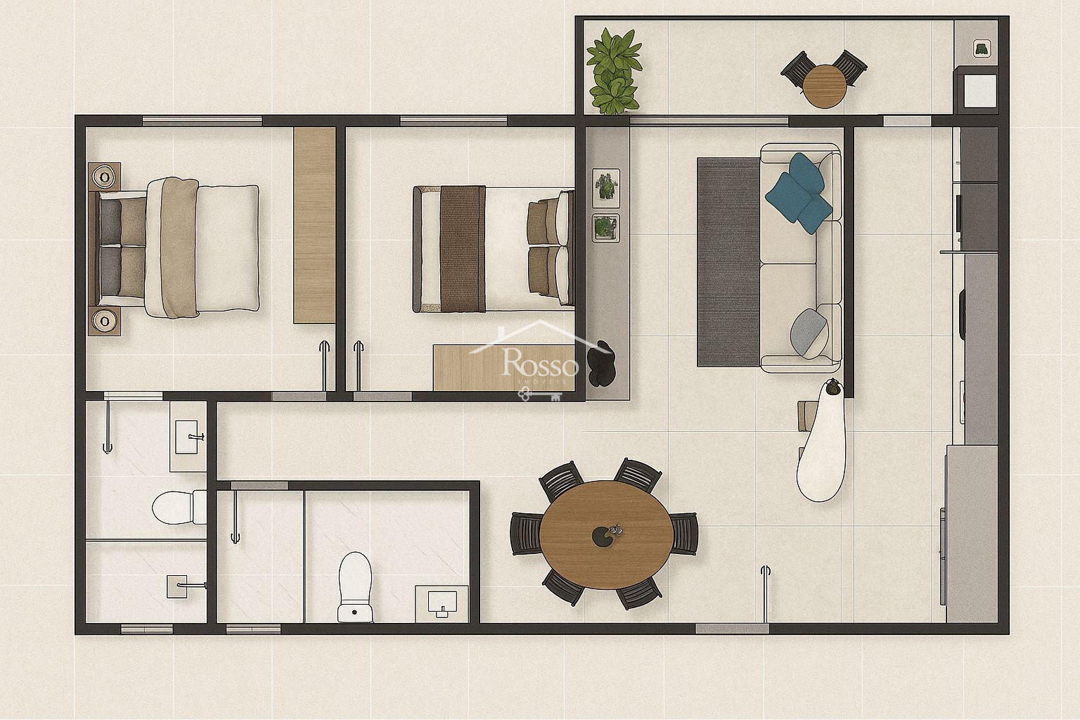 - Apartamento 202 - no 2º andar com 81,30m² de área total sendo 69,3m² área privativa e 12,00m² área de garagem com valor de R$ 471.195,00 (R$ 424.075,50 à vista -10%).